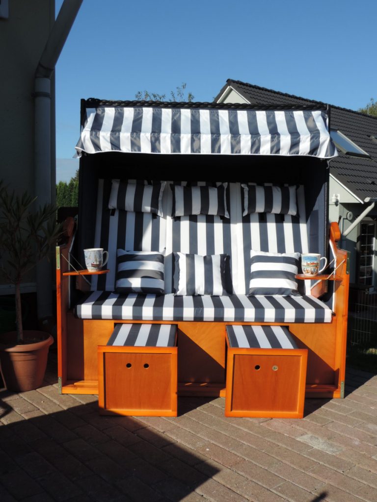 Einrichtung Unser Ferienhaus Zu jeder Haushälfte gehört eine Terrasse mit Sonnenschirm, Grill und Strandkorb, die zum gemütlichen Beisammensein einladen. Wohnung Nummer 19 Die Küche Garderobe Wohnzimmer Schlafzimmer 1 Schlafzimmer 2 Badezimmer Wohnung Nummer 20 Die Küche Garderobe Wohnzimmer Wohnzimmer Kinderschlafzimmer Elternschlafzimmer Badezimmer Hinter dem Haus befindet sich eine kleine Liegewiese, die natürlich auch genutzt werden darf. Instagram